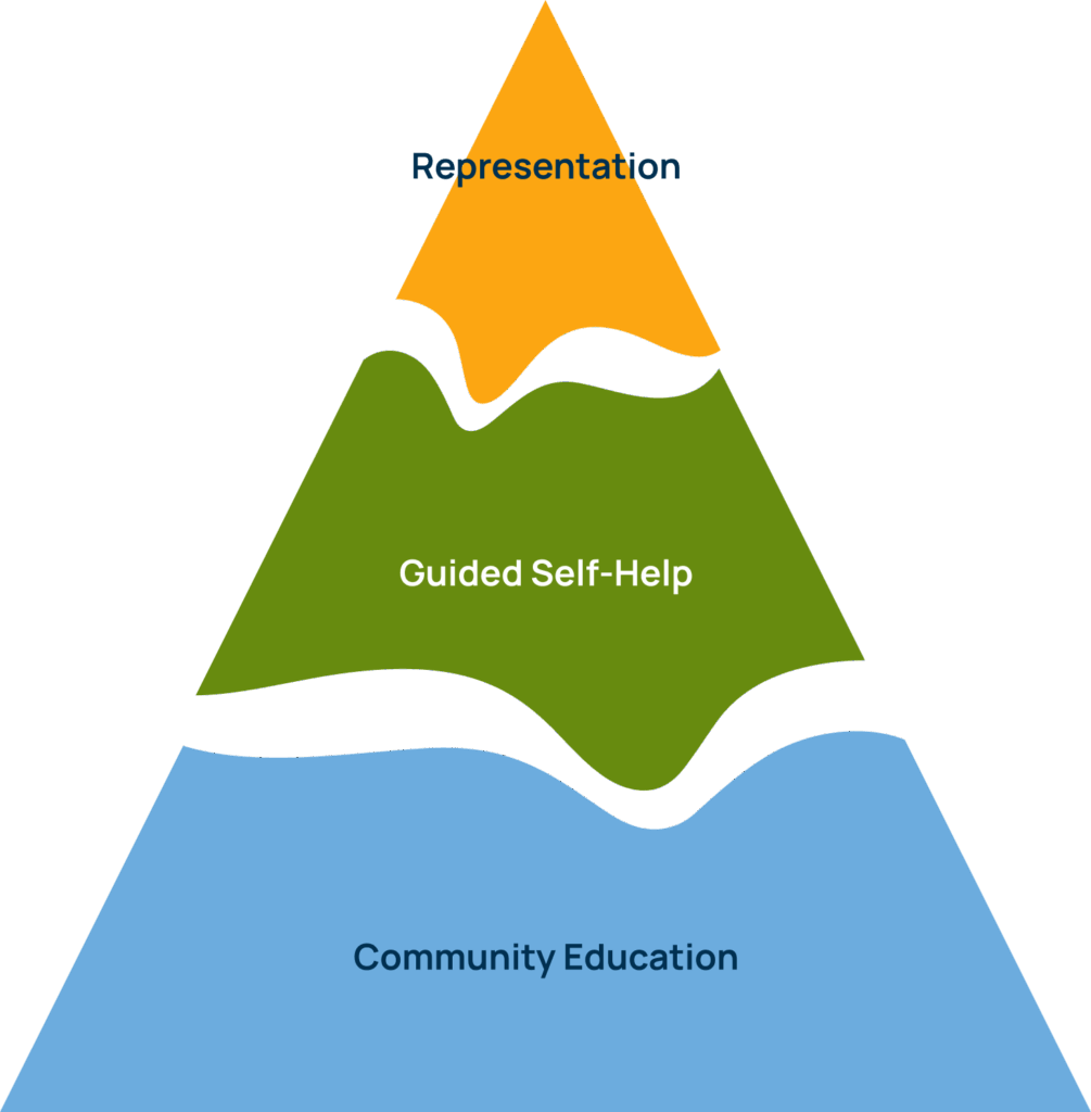 This structure ensures that every resident can access the right level of help — from basic guidance to full representation — while maximizing the reach of our volunteer attorneys.